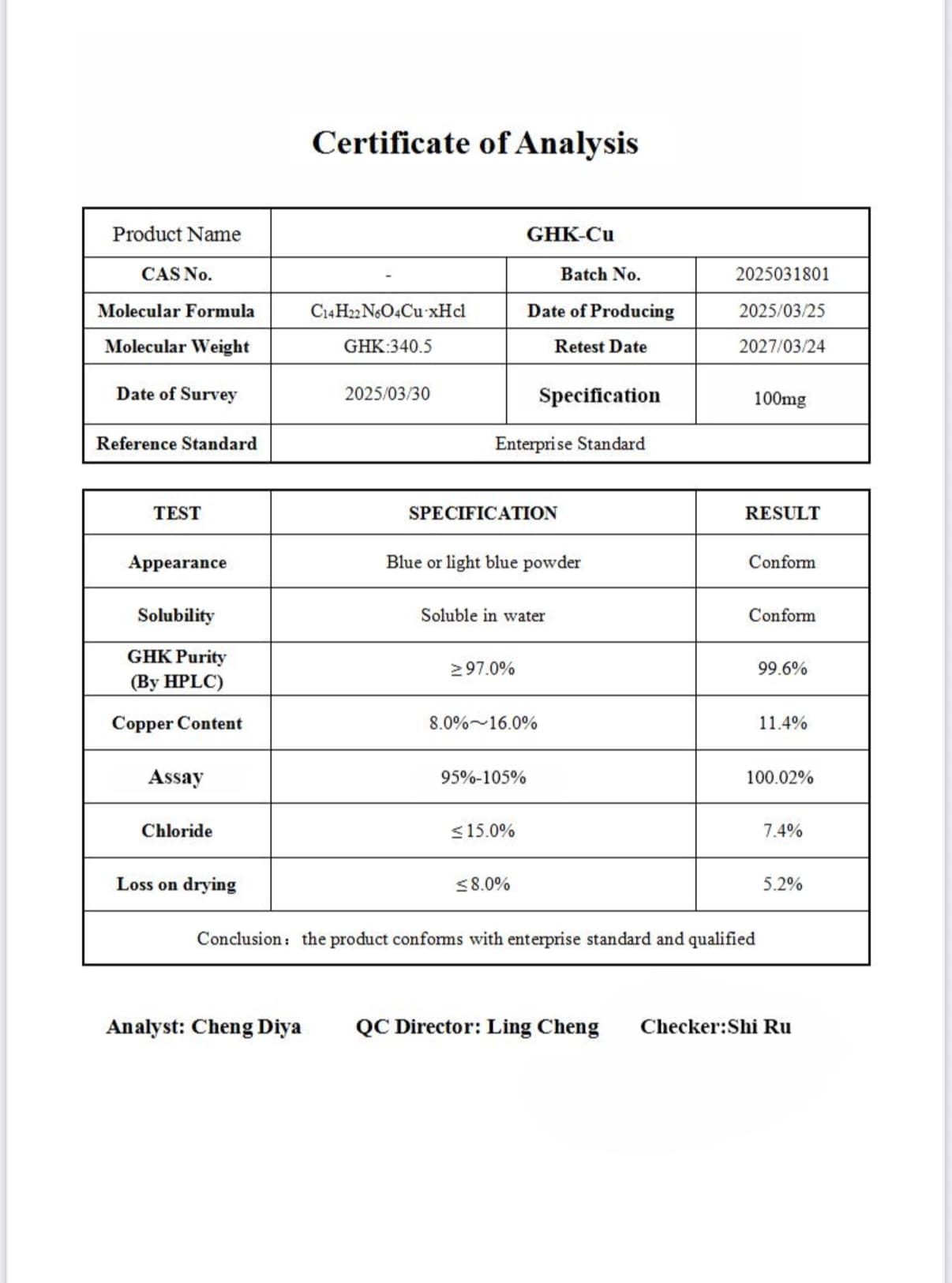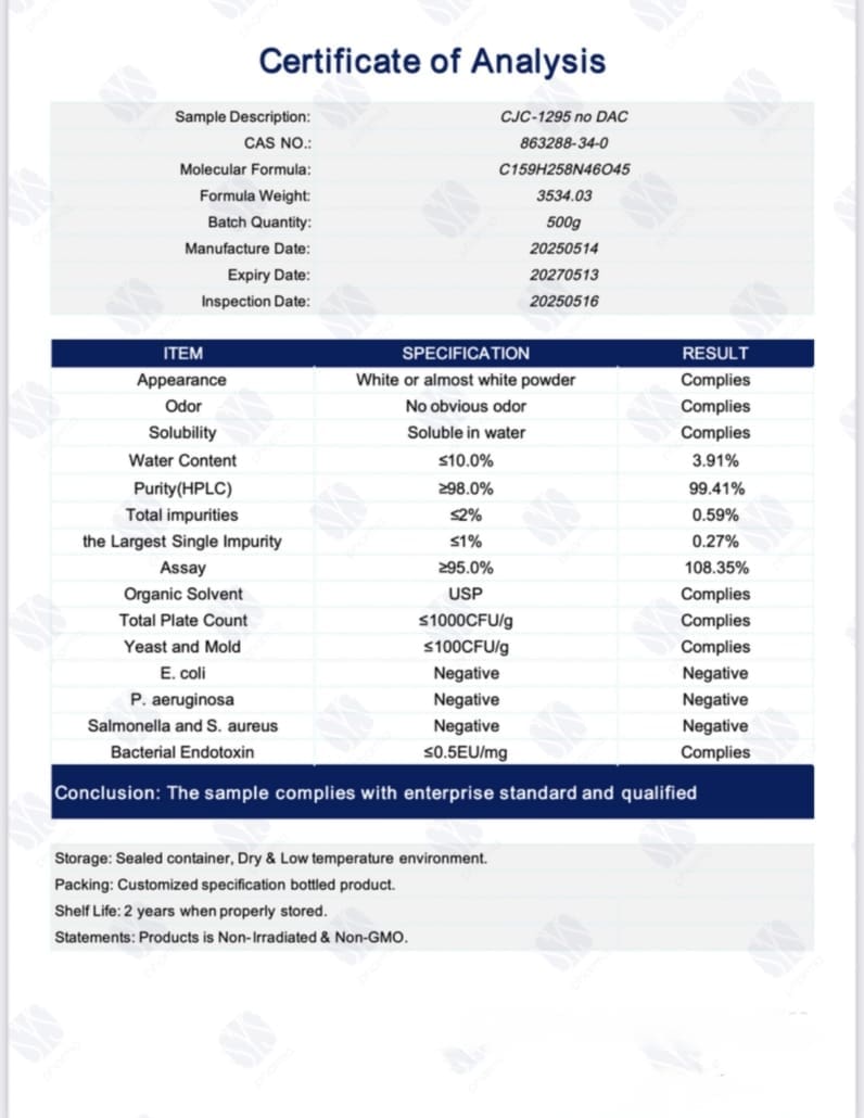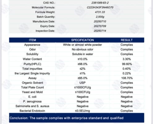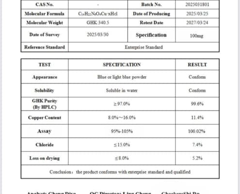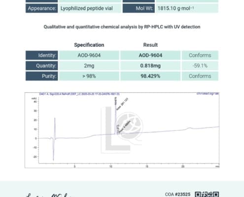 | Tesamorelin – Certificate of Analysis | LOT# 20250815 | ![]() | View/Download COA |