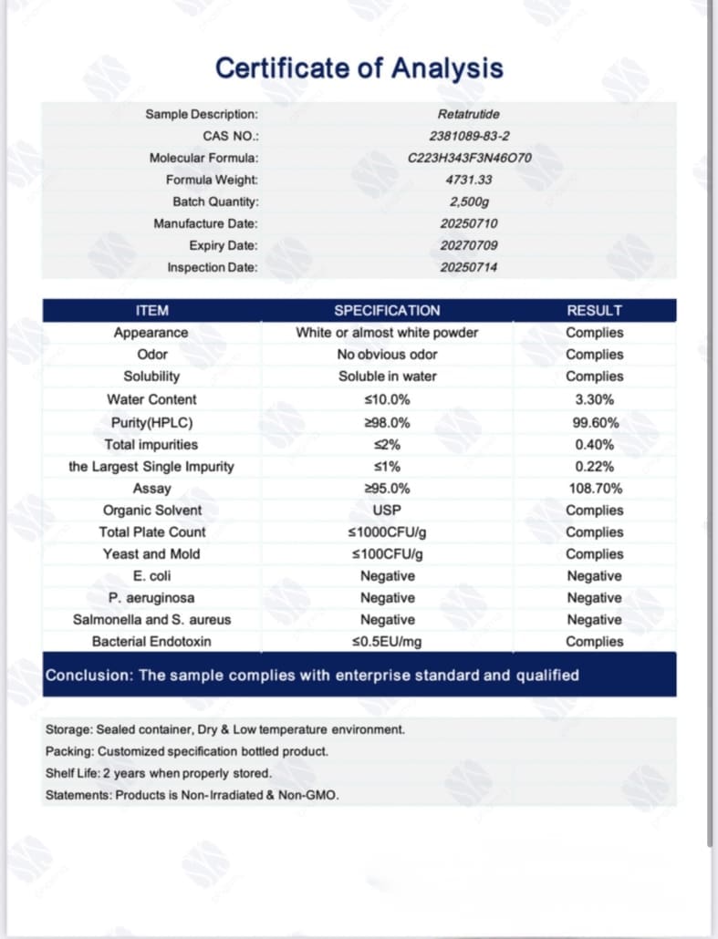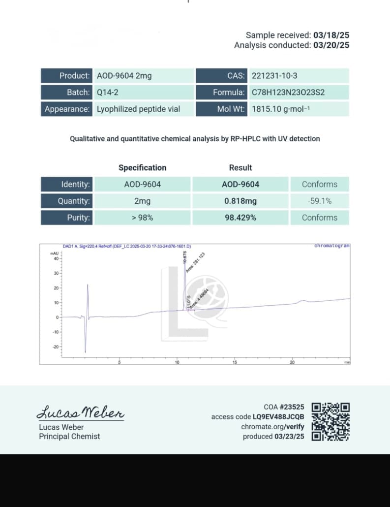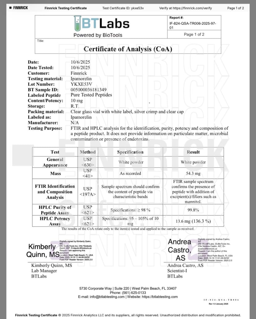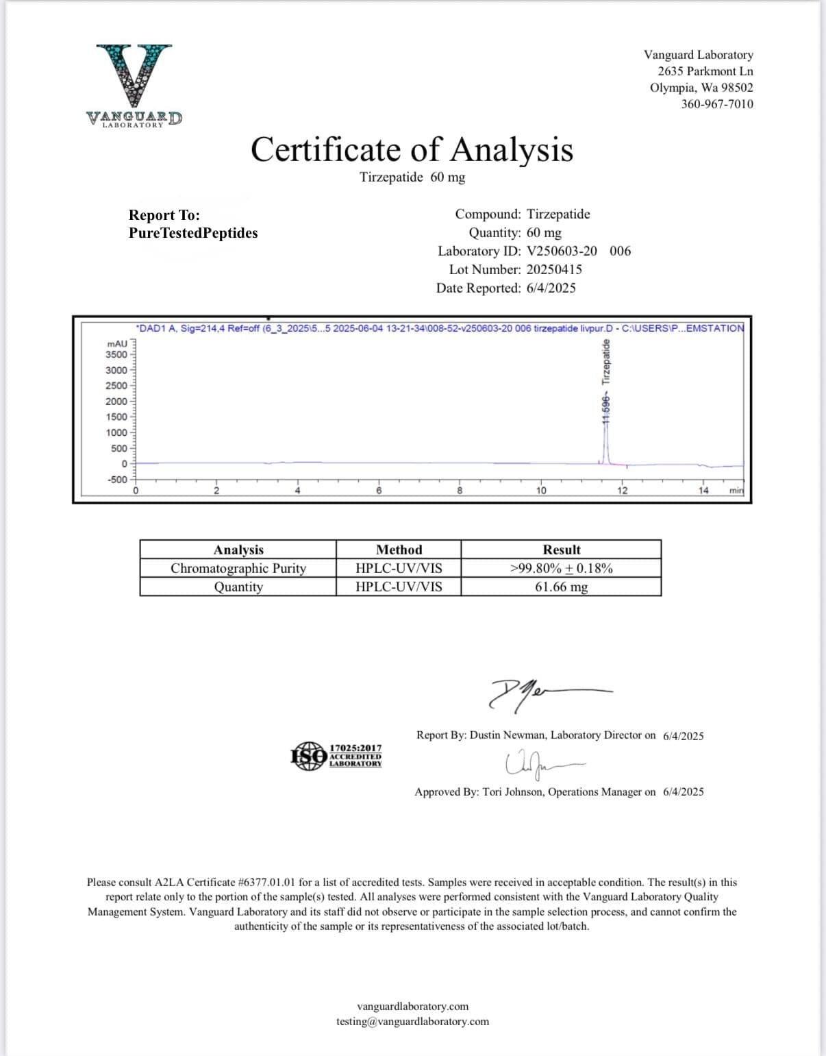 | GLP-1 Tirz – Certificate of Analysis | LOT# 20250915 | ![]() | View/Download COA |