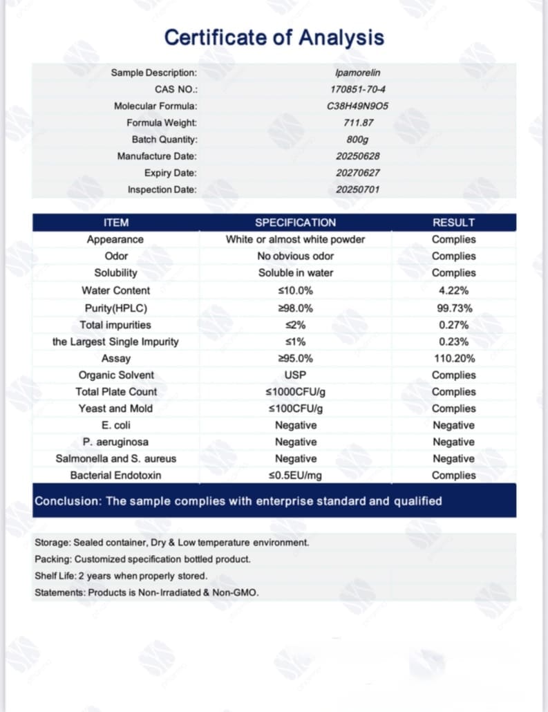 | Ipamorelin – Certificate of Analysis | LOT# 20250808 | ![]() | View/Download COA |