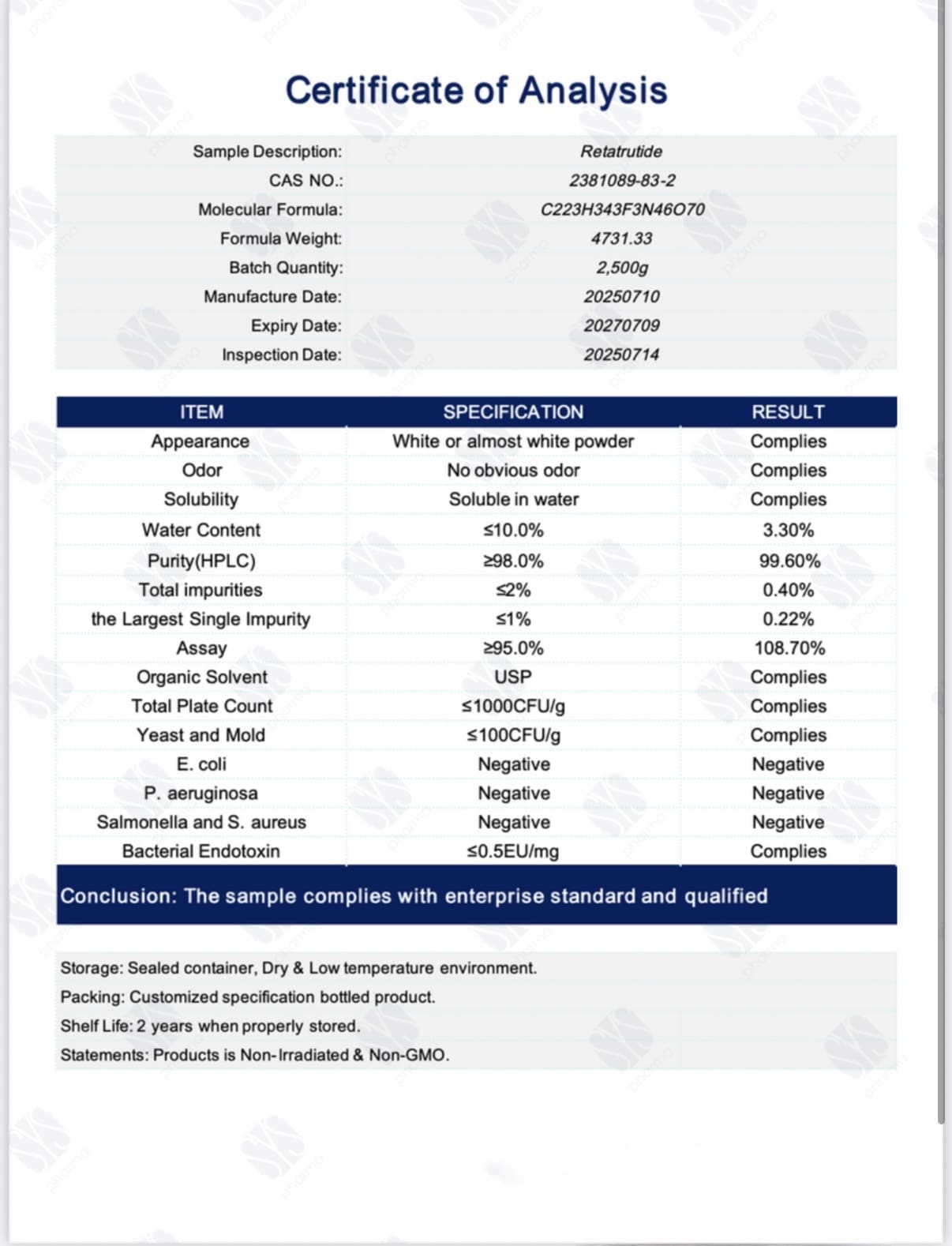 | GLP-3 Reta – Certificate Of Analysis | LOT# 20250915 | ![]() | View/Download COA |