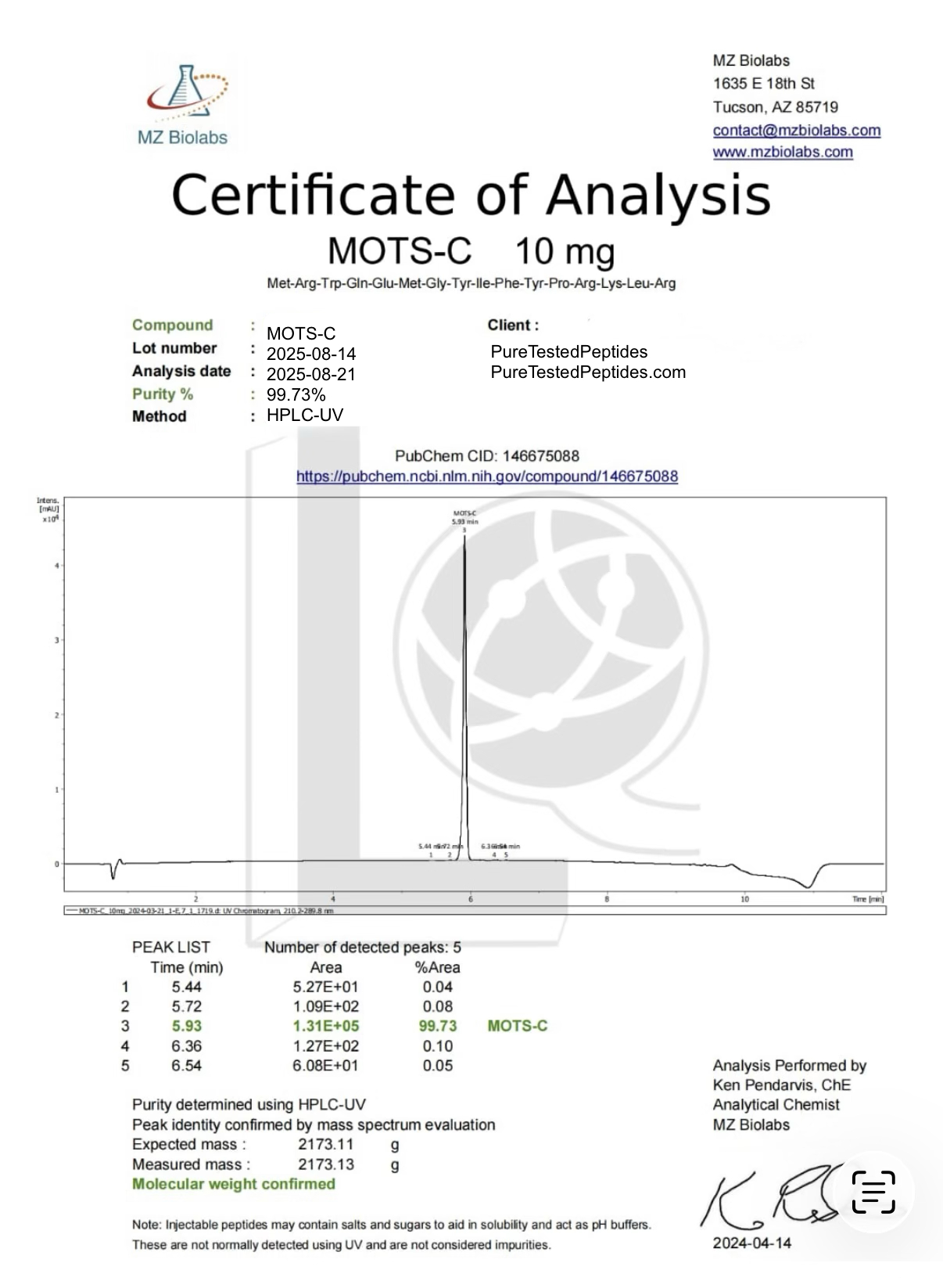 | MOTS-C | LOT# 20250801 | ![]() | View/Download COA |