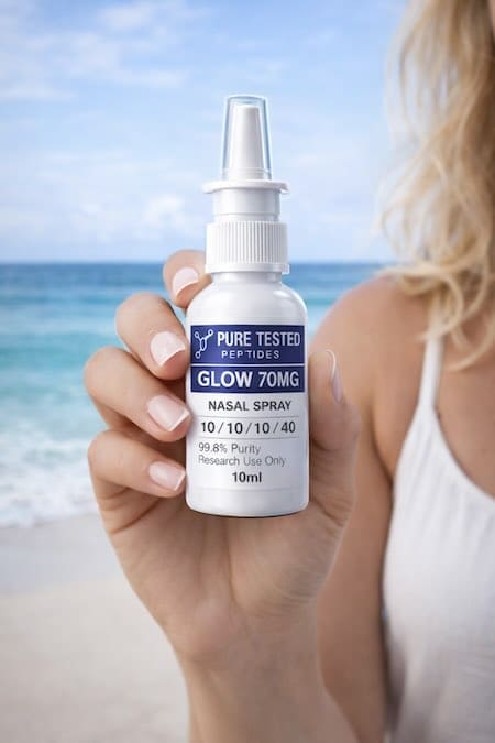 Educational Context: The “Glow Blend” is a proprietary term trademarked by Peptide Sciences consisting of BPC-157, TB-500, and GHK-Cu. Our Skin Repair Stack contains the same three research peptides in similar ratios but is marketed under our own branding to avoid trademark infringement.