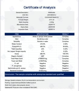 Conformation: These modifications maintain the peptide’s affinity for the GLP-1R, GIPR, and GCGR while prolonging systemic exposure and reducing clearance.